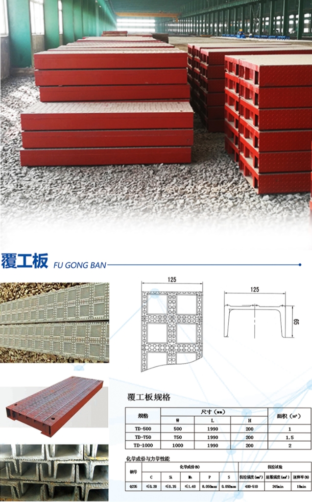 公司主要生產(chǎn)鋼枕、路基箱、覆工板、魚尾板、鐵墊板、彎軌施工、普通鋼結(jié)構(gòu)件以及鋼軌、鋼板樁防腐等。